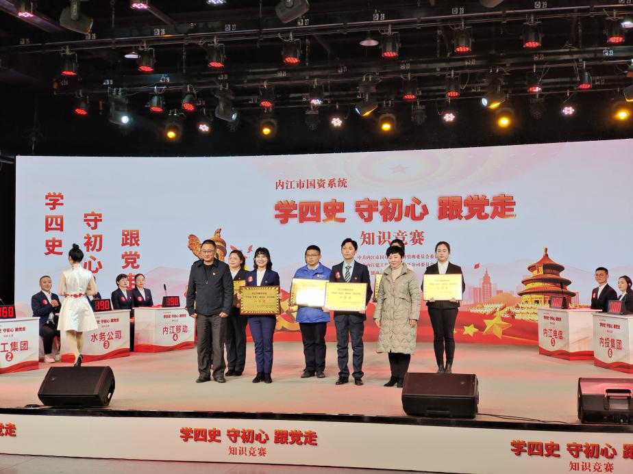 2021年12月28日下午,由中共內(nèi)江市國有資產(chǎn)監(jiān)督管理委員會(huì)委員會(huì)主辦,中共內(nèi)江建工集團(tuán)有限責(zé)任公司委員會(huì)承辦的內(nèi)江市國資系統(tǒng)“學(xué)四史 守初心 跟黨走”知識(shí)競賽在內(nèi)江廣播電視臺(tái)演播大廳舉行。來自市級(jí)各企業(yè)的8支隊(duì)伍24名選手參賽,我司選派的劉梅、袁琳、熊瑞凱3名同志代表參加了此次競賽。