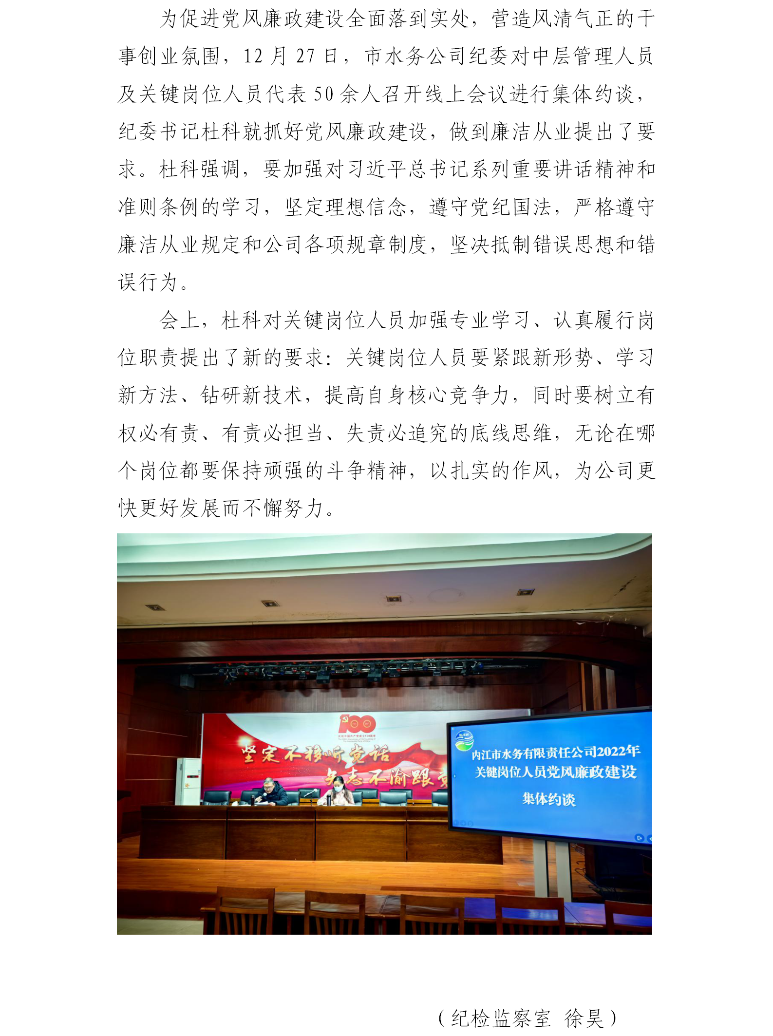 市水務公司紀委對關鍵崗位人員進行集體約談