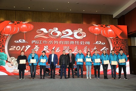 2020年1月17日下午,內江市水務有限責任公司在內江濱江假日酒店召開了2019年度總結表彰大會。市國資委黨委副書記、副主任何清志,內投集團黨委書記、董事長詹財榮出席,公司全體職工參加會議。會議由公司黨委副書記、副總經理、工會主席李濤主持。