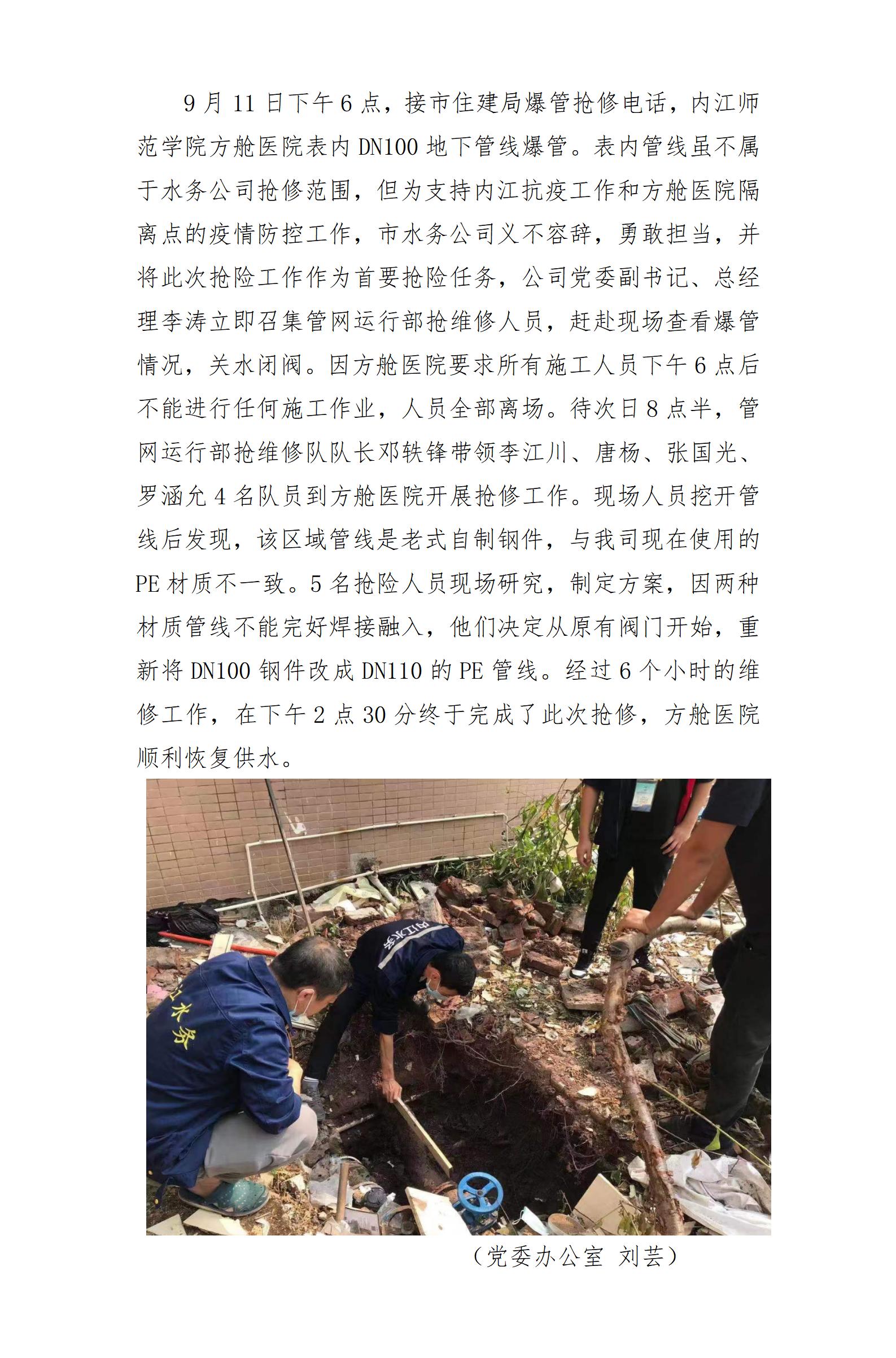 市水務(wù)公司支援內(nèi)江師范學(xué)院方艙 醫(yī)院搶修表內(nèi)管線(xiàn)