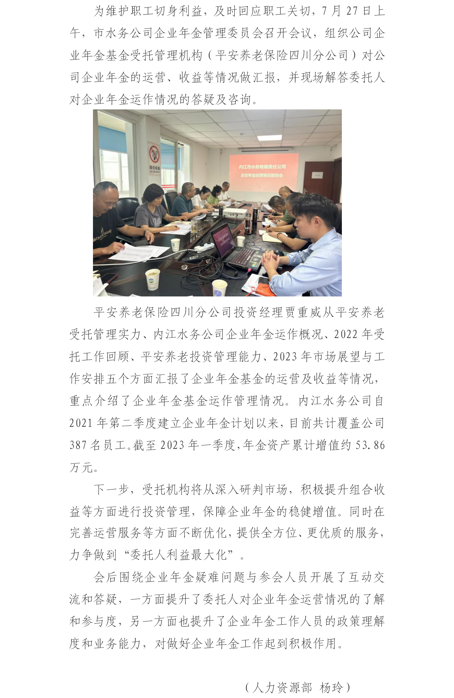 市水務公司召開企業年金運營情況報告會