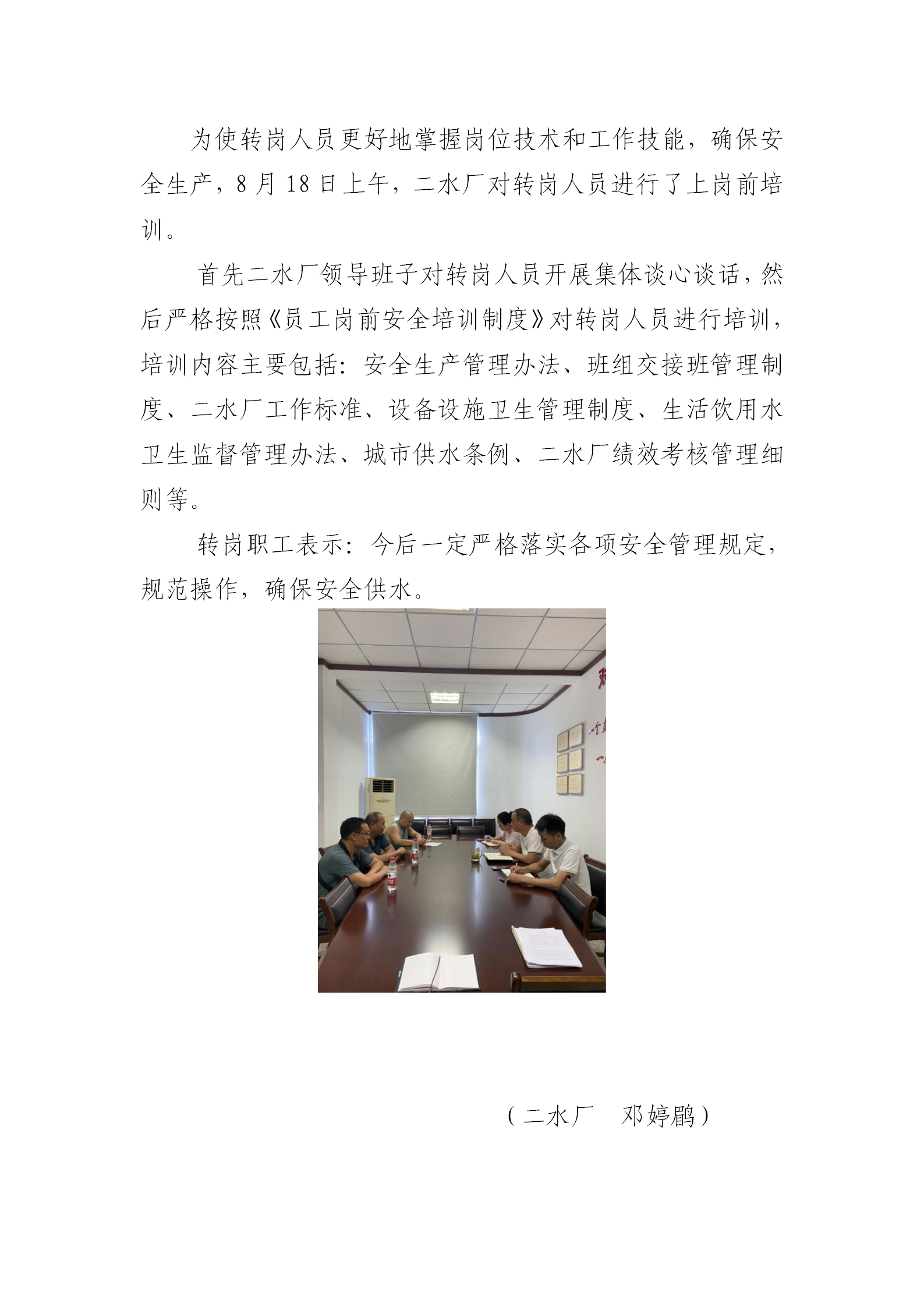 二水廠完成轉(zhuǎn)崗人員崗前培訓工作