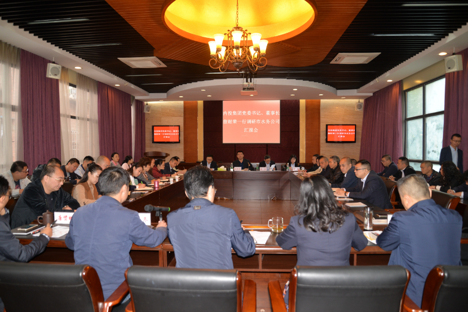 10月16日上午,內投集團黨委書記、董事長詹財榮率隊調研市水務公司。公司領導班子成員、中層管理人員近30人參會。會議由副總經理林冬主持。