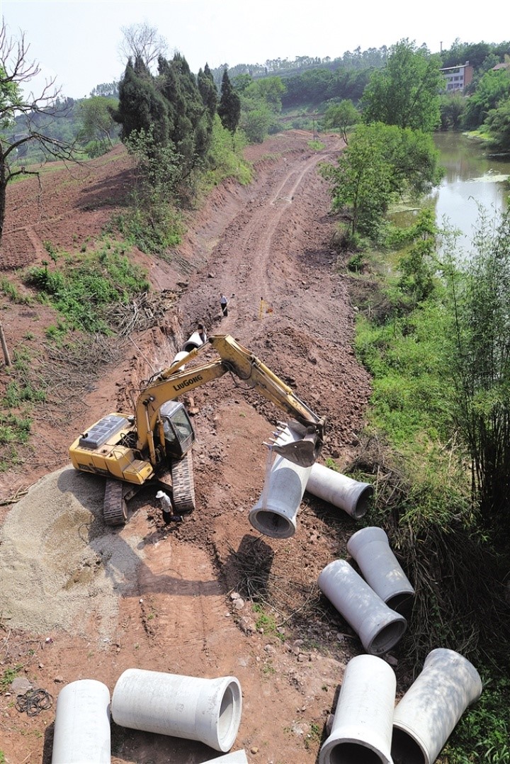 日前,記者來到位于東興區(qū)新江街道辦事處清流村(沱江、清流河、小青龍河交匯處),看到不少工人在工地上忙碌,有的開著挖機平場地,有的在挖溝槽埋管網,有的在用貨車運輸土方,好不熱鬧。