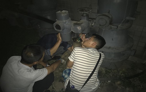5月16日晚上19:43分,污水處理廠一期4號生化池進氣閥跳閘,檢修人員放棄自身休息時間,立即趕赴現場開展搶修。